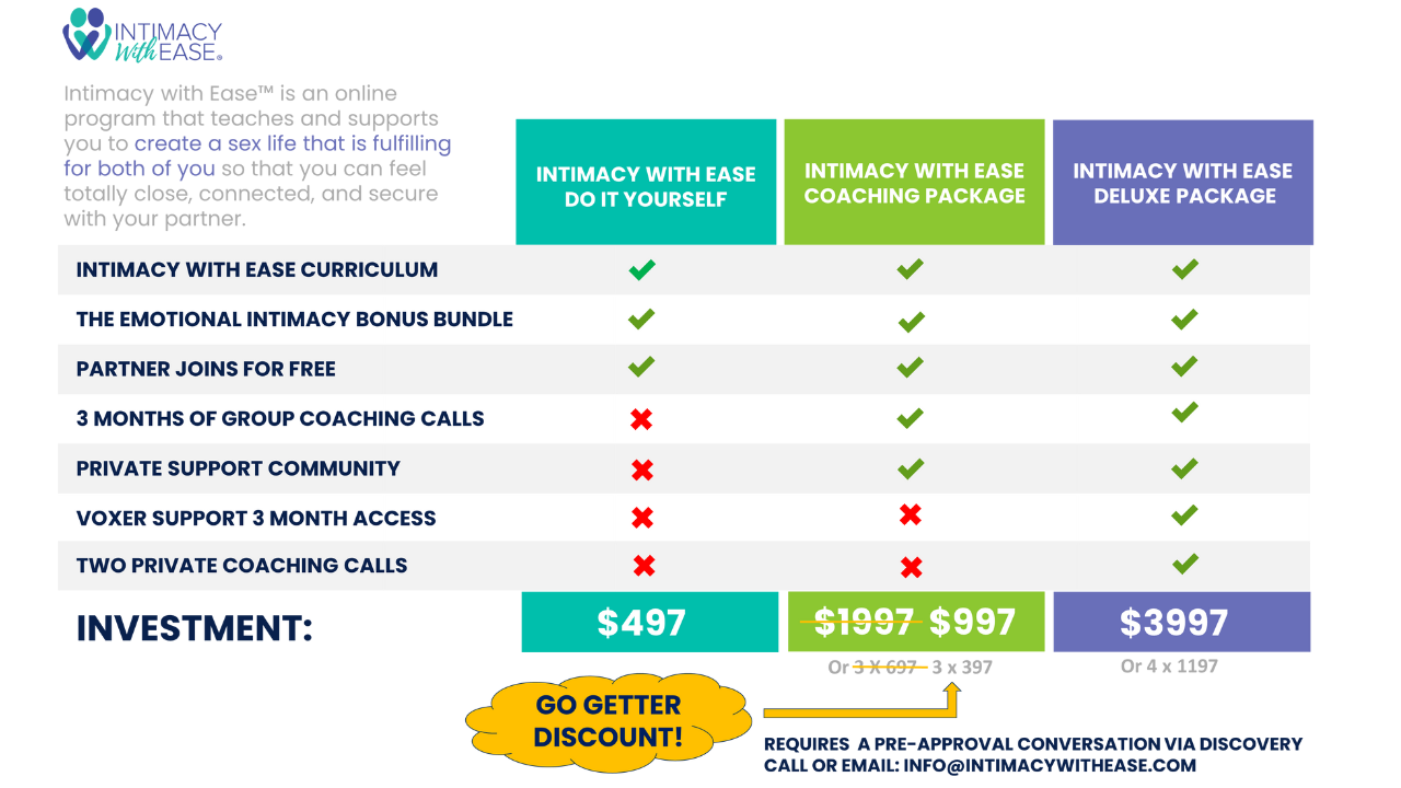 Intimacy With Ease is not just a description of the problem and what’s got you stuck; it’s an implementation program that walks you through a process where you can change your experience.
